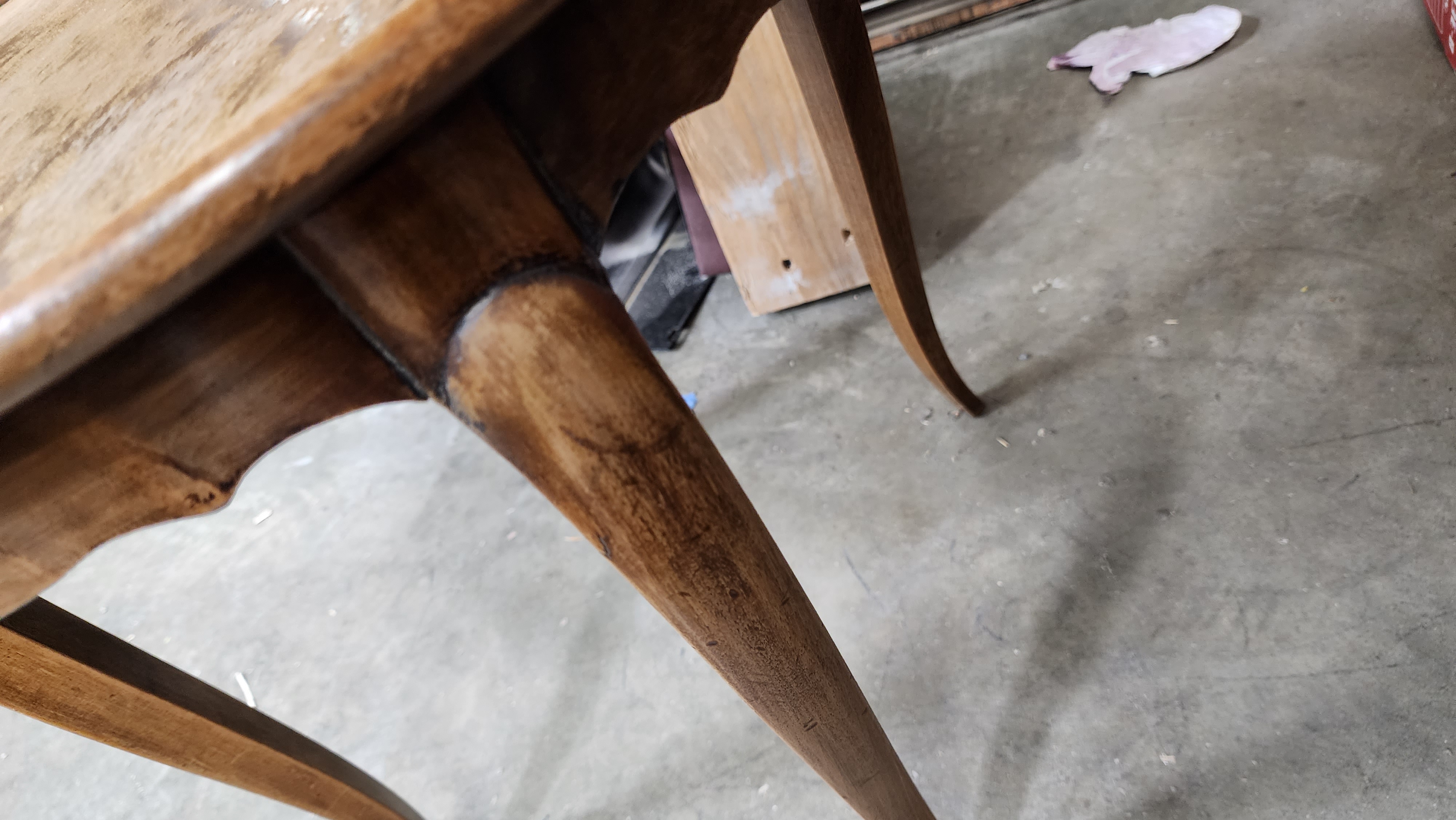 Dan restored small table by eliminating water stains and damage, then sealing the wood. After the wood was sealed he applied 5 coats of lacquer to protect the wood.